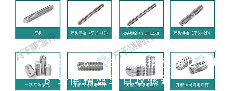 1)開槽普通螺釘多用于較小零件的連接。它有盤頭螺釘、圓柱頭螺釘、半沉頭螺釘和沉頭螺釘。盤頭螺釘和圓柱頭螺釘的釘頭強度較高,瑁在普通的部件連接上;半沉頭螺釘的頭部呈弧形,安裝后它的頂端略外露,且美觀光滑,一般